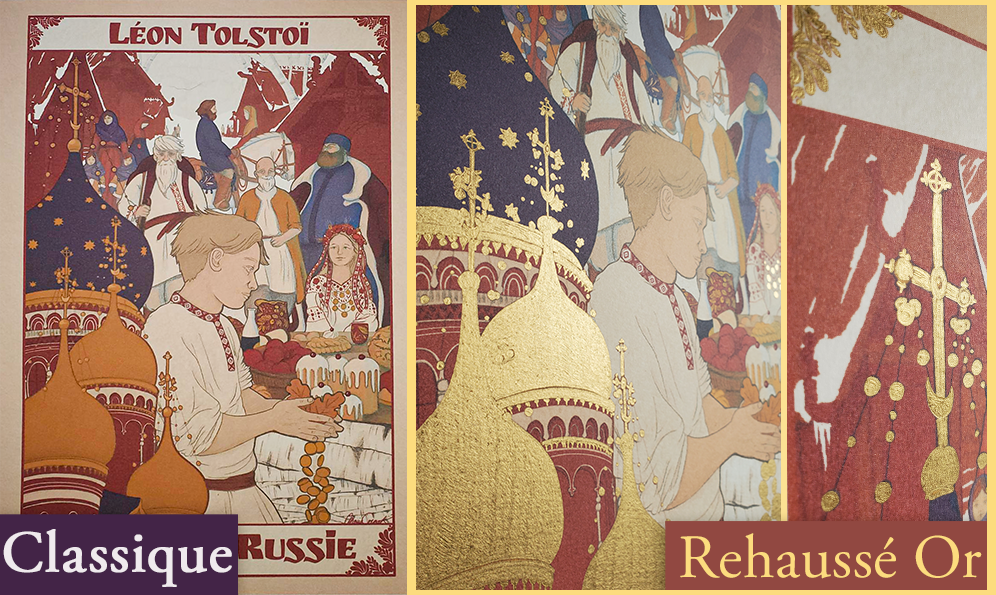Variante dorée (cf photos ci-dessous) : 45€ port compris*. Le poster est rehaussé à l’encre dorée, à la main.